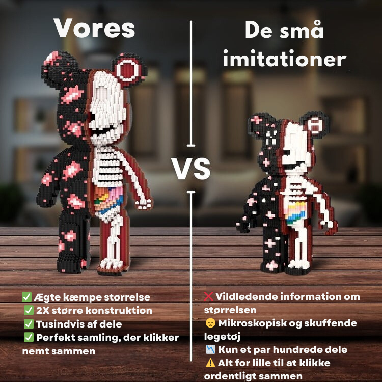 Æsken indeholder alle de højkvalitets byggeklodser, der kræves til din bjørn, plus en detaljeret, letforståelig instruktionsmanual.