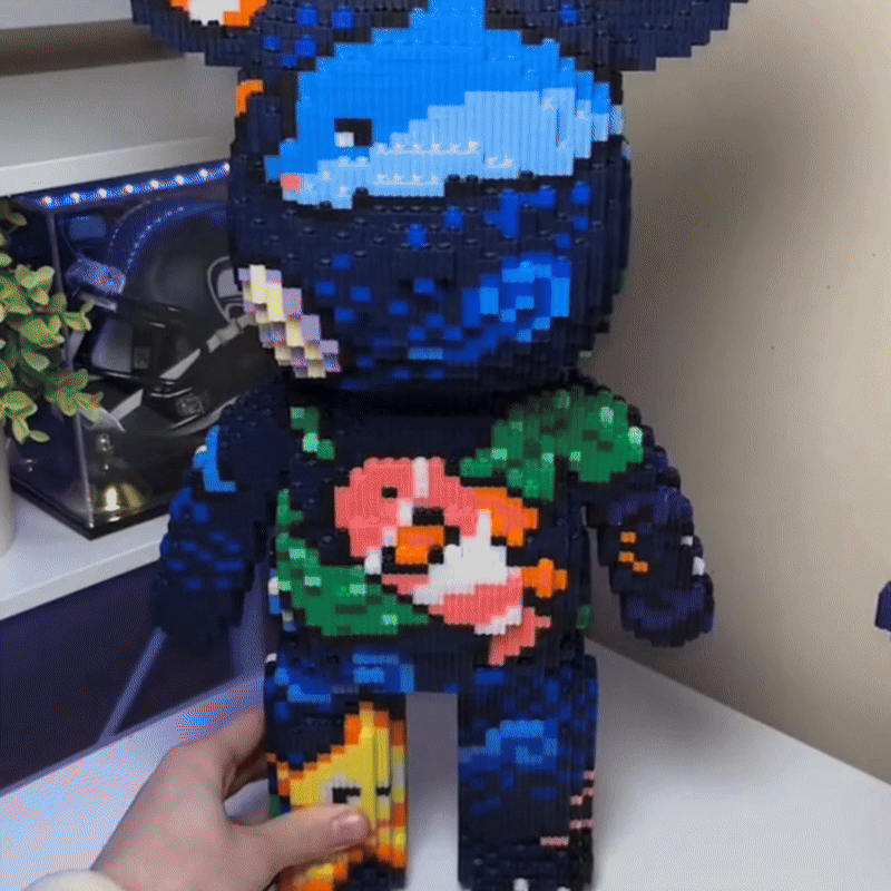 Den imponerende størrelse og det moderne design gør din færdige Pixelblocks-bjørn til en garanteret samtalestarter, der tilfører unik personlighed og stil til dit rum.